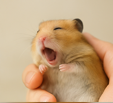 あくびは「眠い」「安心してる」というポジティブなサインです。一方で、威嚇は「近づくな!」「怖い!」という強い拒絶のサイン。もし「ジージー」と鳴きながら歯をむき出しにしていたら、それはあくびではなく、ハムスターが何かに怯えている可能性が高いですね。